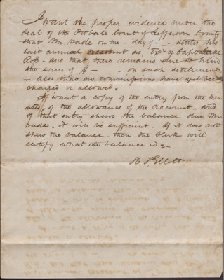 In this draft of a probate account statement, H. T. Ellett states that under the seal of the Jefferson County Probate Court, Mr. Wade has settled his last annual account and no money remains due to him. The statement goes on to advise on further documentation on the account.