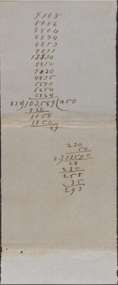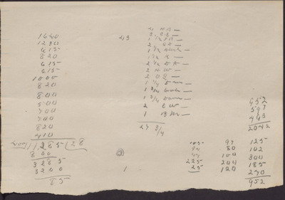 This undated paper lists two long columns and three shorter columns of unidentified calculations.