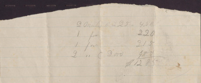 This slip of paper contains calculations for the purchase of mules coming to a total of twelve dollars and eighty-three cents for eight mules.