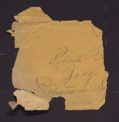 This fragment of an envelope contains the handwritten words "Private", "Judge" and "Deposited".