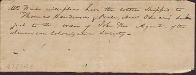 This note instructs Mr. Wade where to ship cotton and who to assign the recipient.