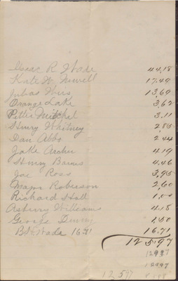 This ledger page lists people who are owed money along with the amounts owed them. The originator of the ledger page is unidentified.