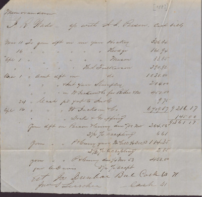 Memorandum, Isaac R. Wade Account with J. L. Person, Cash Bills