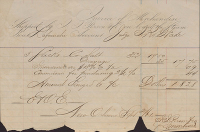 Invoice for Merchandise, Shipped by J. J. Person and Co. to Isaac R. Wade, September 21, 1861