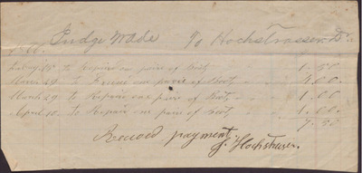 Receipt,, Isaac R. Wade to J. Hochstruser, 1866