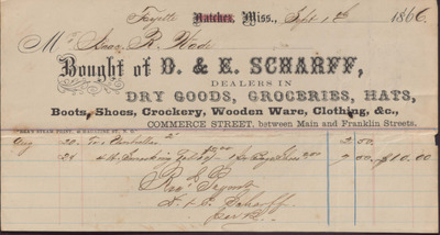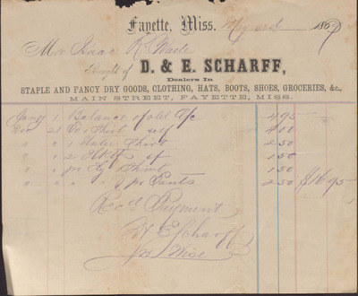 Receipt, D. & E. Scharff to Isaac R. Wade, September 1, 1866