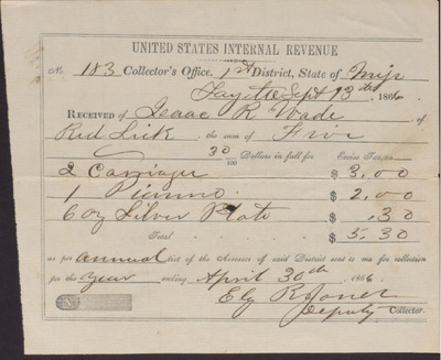 IRS Receipt to Isaac R. Wade, September 13, 1866