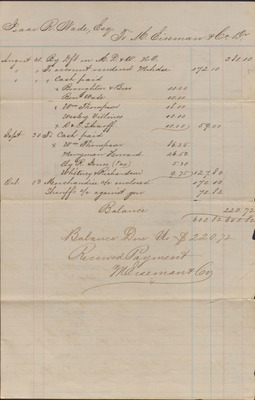 Statement, M. Eiseman and Co. to Isaac R. Wade, 1866