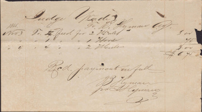 Envelope, M. Eseman Account and Vouchers, Isaac R. Wade, 1866