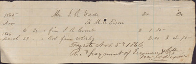 Receipt, Isaac R. Wade from B. Hyman, November 4, 1866