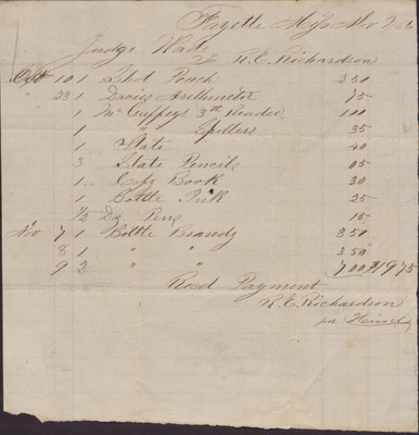 Receipt, Isaac R. Wade from R. E. Richardson, November 9, 1866