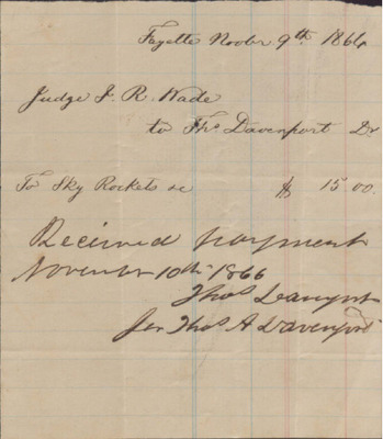 Receipt, Isaac R. Wade from Thomas Davenport, November 9, 1866