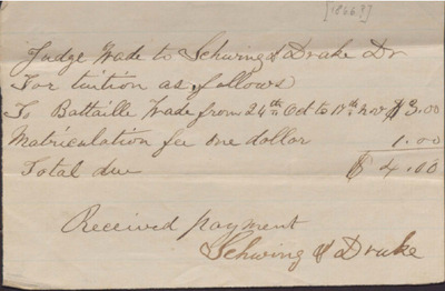 Receipt, Isaac R. Wade from Schwing and Drake, 1866