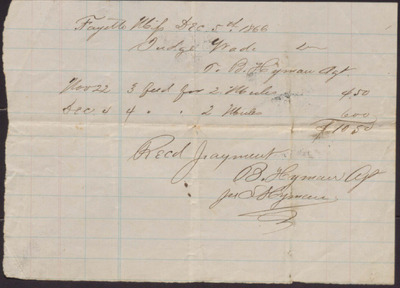Receipt, Isaac R. Wade from B. Hyman, December 5, 1866