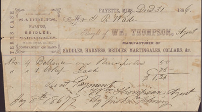 Receipt, Isaac R. Wade from William Thompson, December 31, 1866