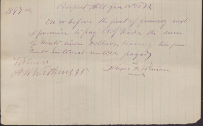 Promissory Note, Alexas Pitman, January 24, 1872