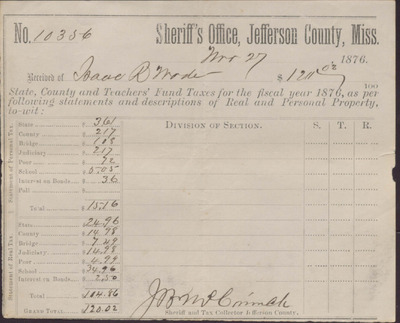 Tax Receipt, Isaac R. Wade from Sheriff's Office, November 27, 1876