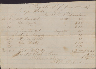 Receipt, R. E. Richardson to Isaac R. Wade, January 11, 1867
