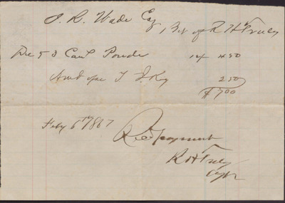 Receipt, R. H. Truly to Issac R. Wade, February 16, 1867