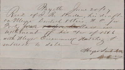 Receipt, Meyer Deutch and Weis to Isaac R. Wade, June 20, 1867