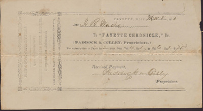 Receipt, Fayette Chronical to Isaac R. Wade, March 8, 1870