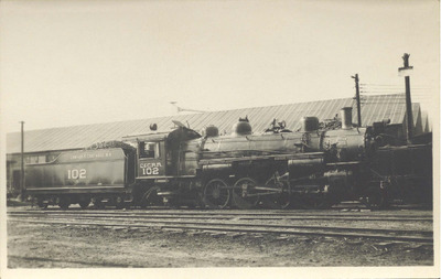 This photo postcard shows train engine 102 is shown parked on the rails in front of the train station. "Canton and Carthage, Canton, Miss" is written on the back of the postcard above an ink stamp that reads "C. W. Whitbeck" with Witbeck's address in Brookhaven, Mississippi.